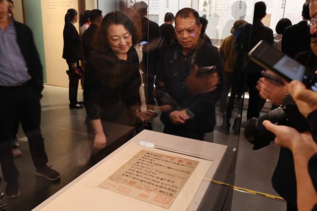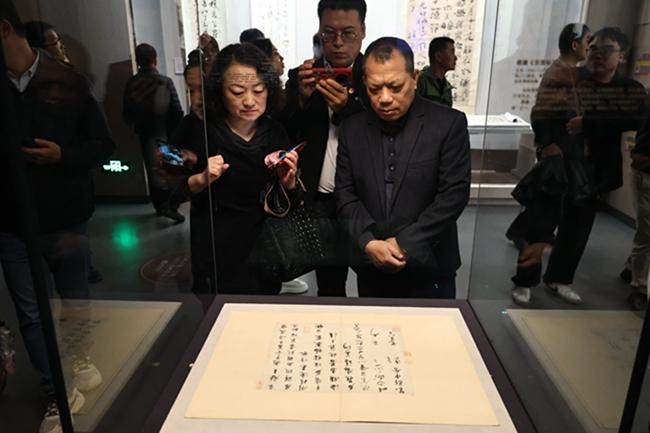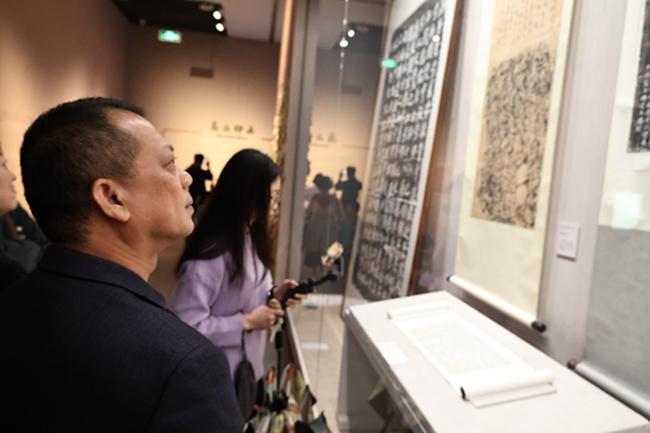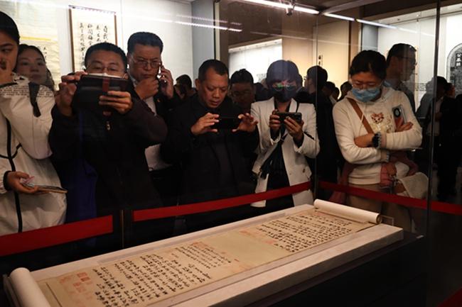 在参观过程中,教师们近距离地观察书法真迹中字迹的线条与墨迹,在反复品味中感受古人笔下墨色的浓、淡、燥、润的变化,落笔时尖、逆、侧的随心所欲,和行笔速度的万般变化,并用手机拍照记录。