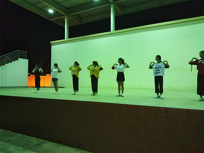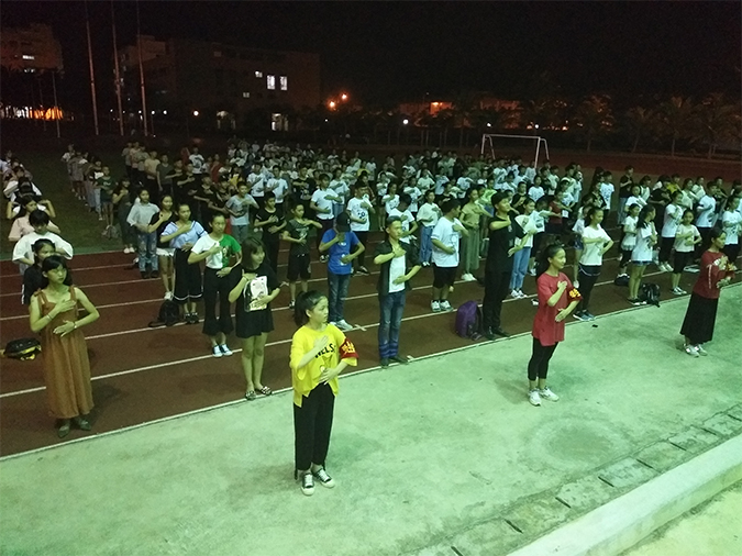 2017年9月17日晚上19:30分,学生科、校团委组织2017级新生在学校运动场上进行文明礼仪操培训,邀请群众艺术教研室宋镕汝老师授课,在学生干部的带领下,全体新生践行《中等职业学校学生公约》中的辨美丑,立形象。