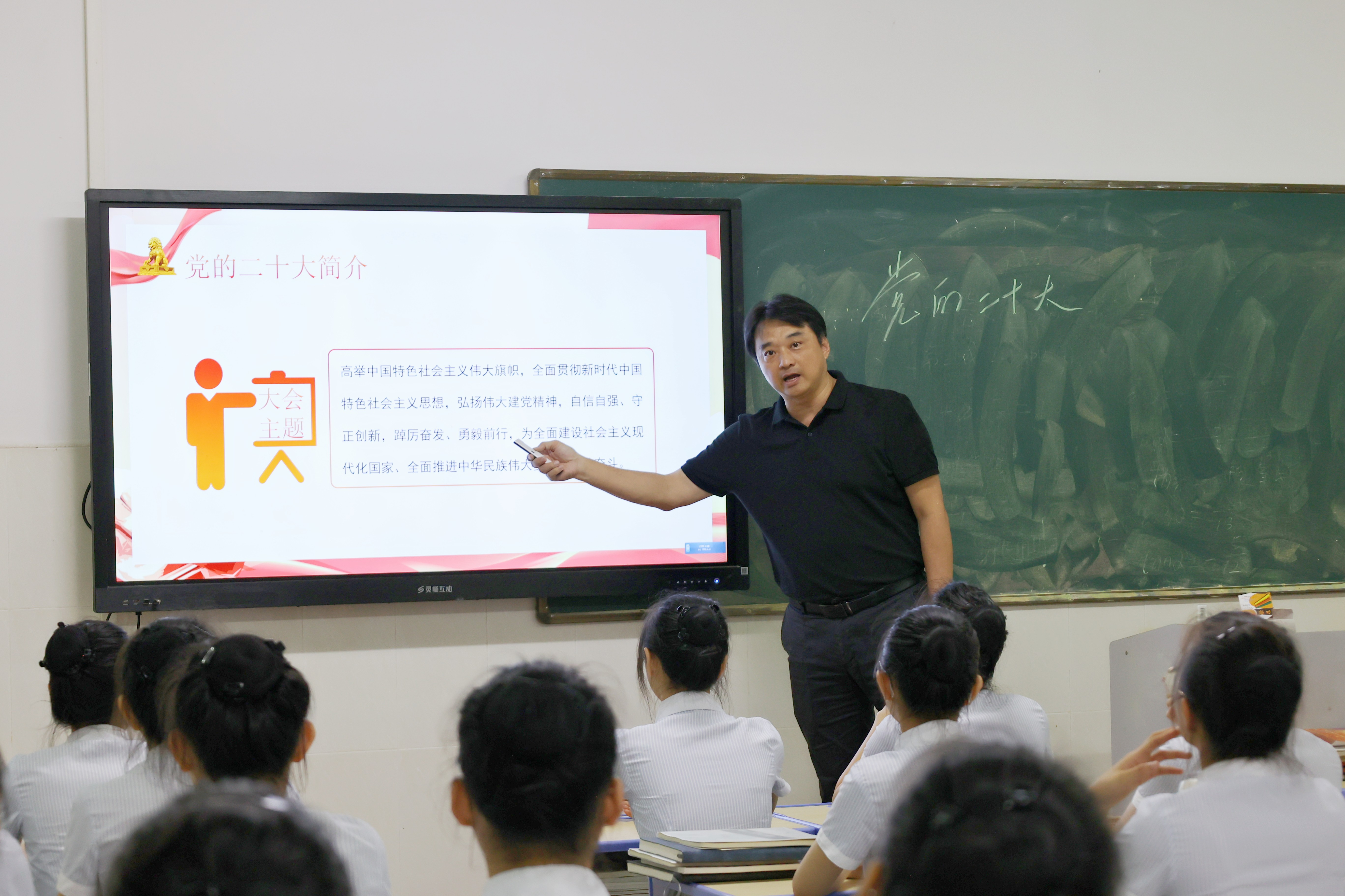 课堂上,莫青桥校长围绕“党的二十大”主题,从“党的二十大简介和“党的二十大报告重点解读”两个方面进行讲解,向学生讲述新时代十年来中国共产党经历的三件大事,带领学生们学习党的二十大报告,领会党的二十大精神。