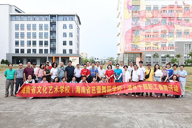 出发前校领导与退休干部职工们在学校内合影