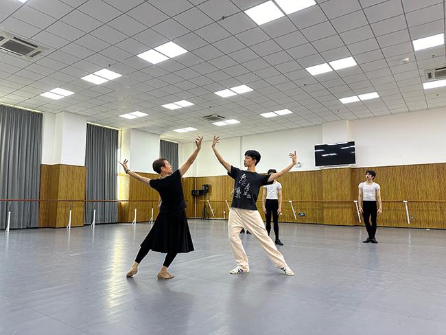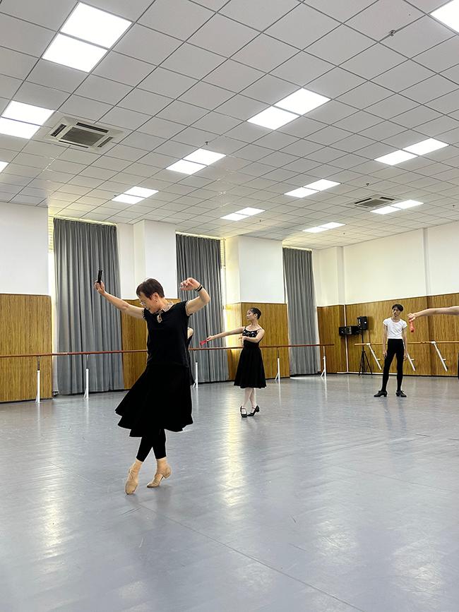 在指导培训期间,杨越教授以深厚的艺术功底和丰富的教学经验,对beat365芭蕾舞蹈教研室师生进行了全面细致的指导。在《天鹅湖》三幕西班牙性格舞剧目的排练中,杨越教授针对性格舞的教学内容,现场示范、详细讲解,深入分析了该剧目的舞蹈风格和技巧,帮助师生们准确把握人物性格特点,掌握西班牙的基本舞姿形态、步伐以及音乐的节奏类型。