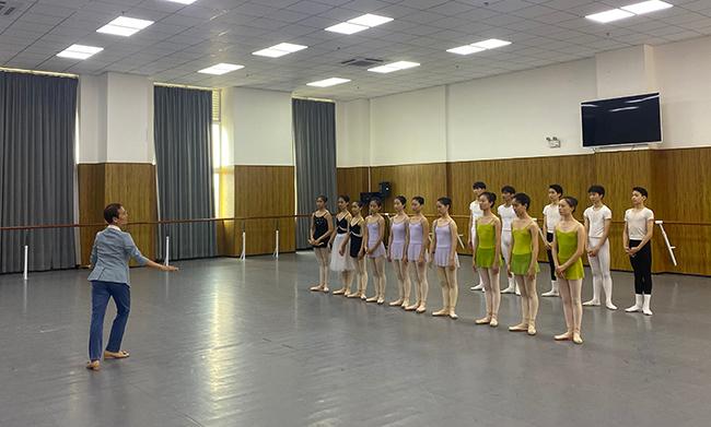 杨越教授观看芭蕾舞表演专业的期中考试课