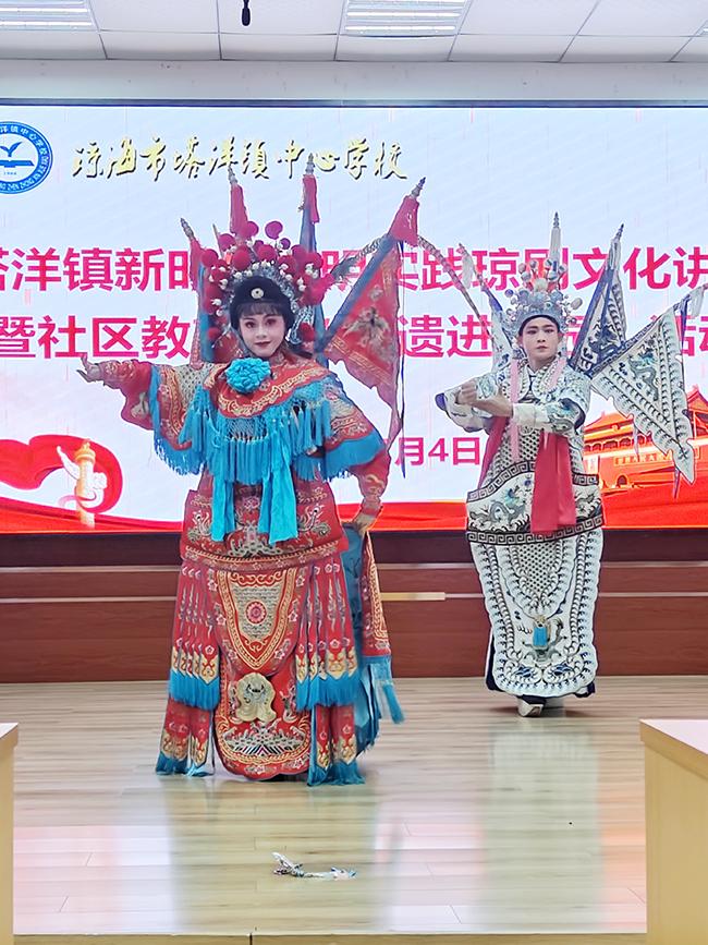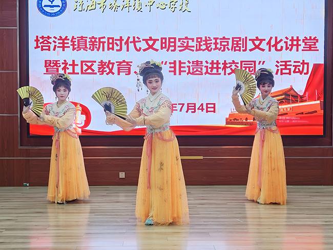 塔洋镇新时代文明实践琼剧文化讲堂暨社区教育活动、“非遗进校园”活动现场