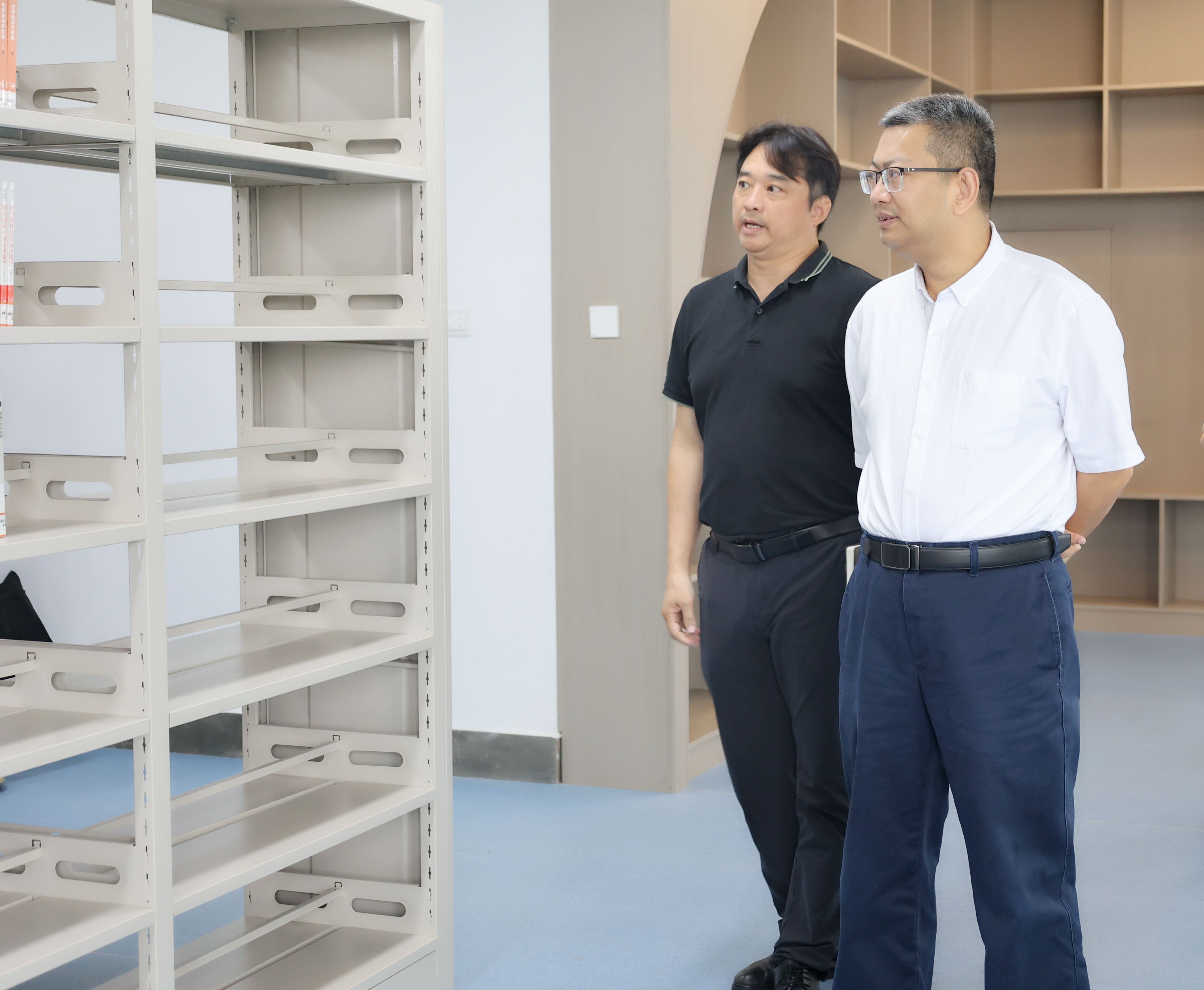刘成副厅长一行到校后,首先在校园内开展实地调研,重点视察了beat365新建的美术与图书馆楼,深入了解图书馆设施设备、图书采购等情况。