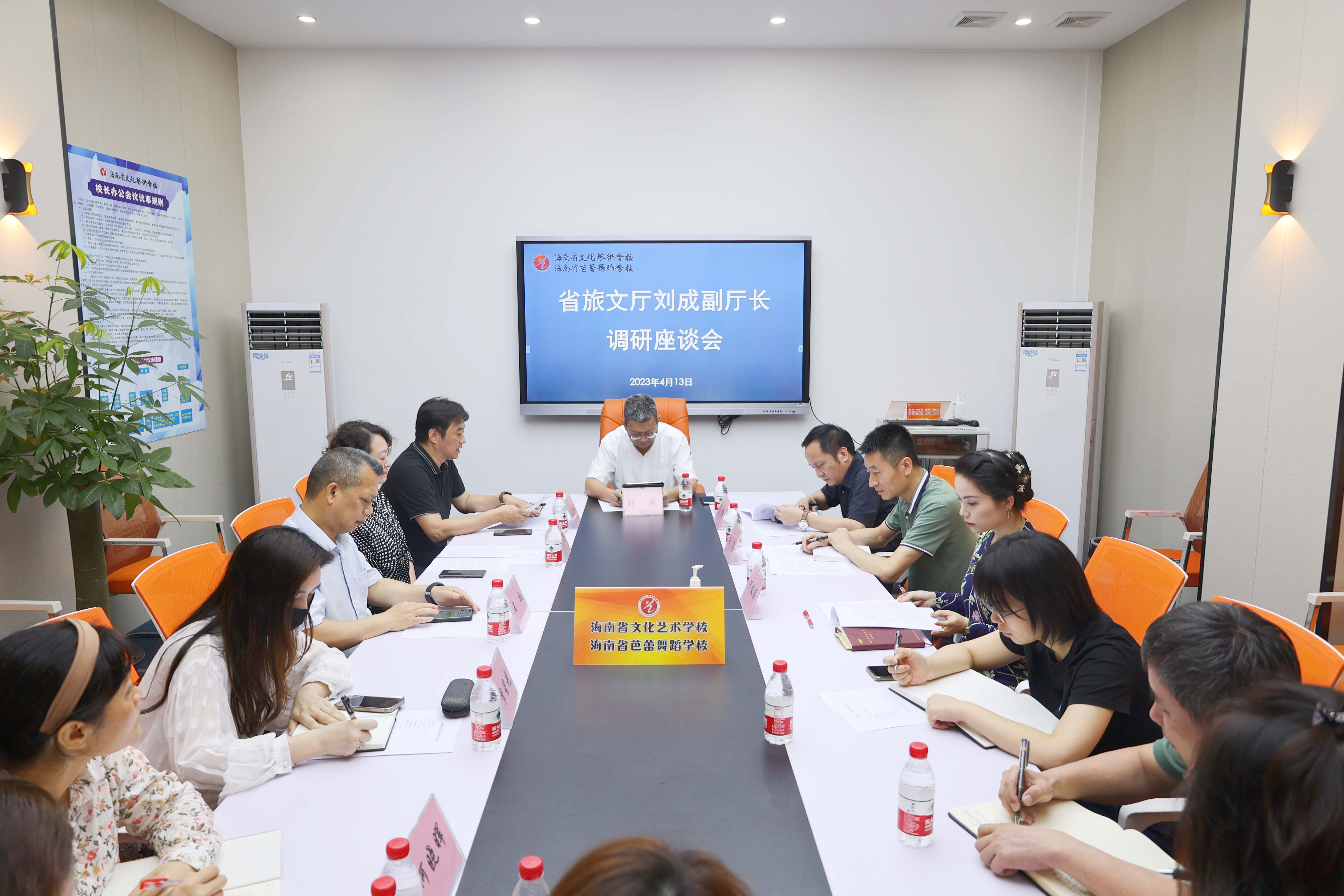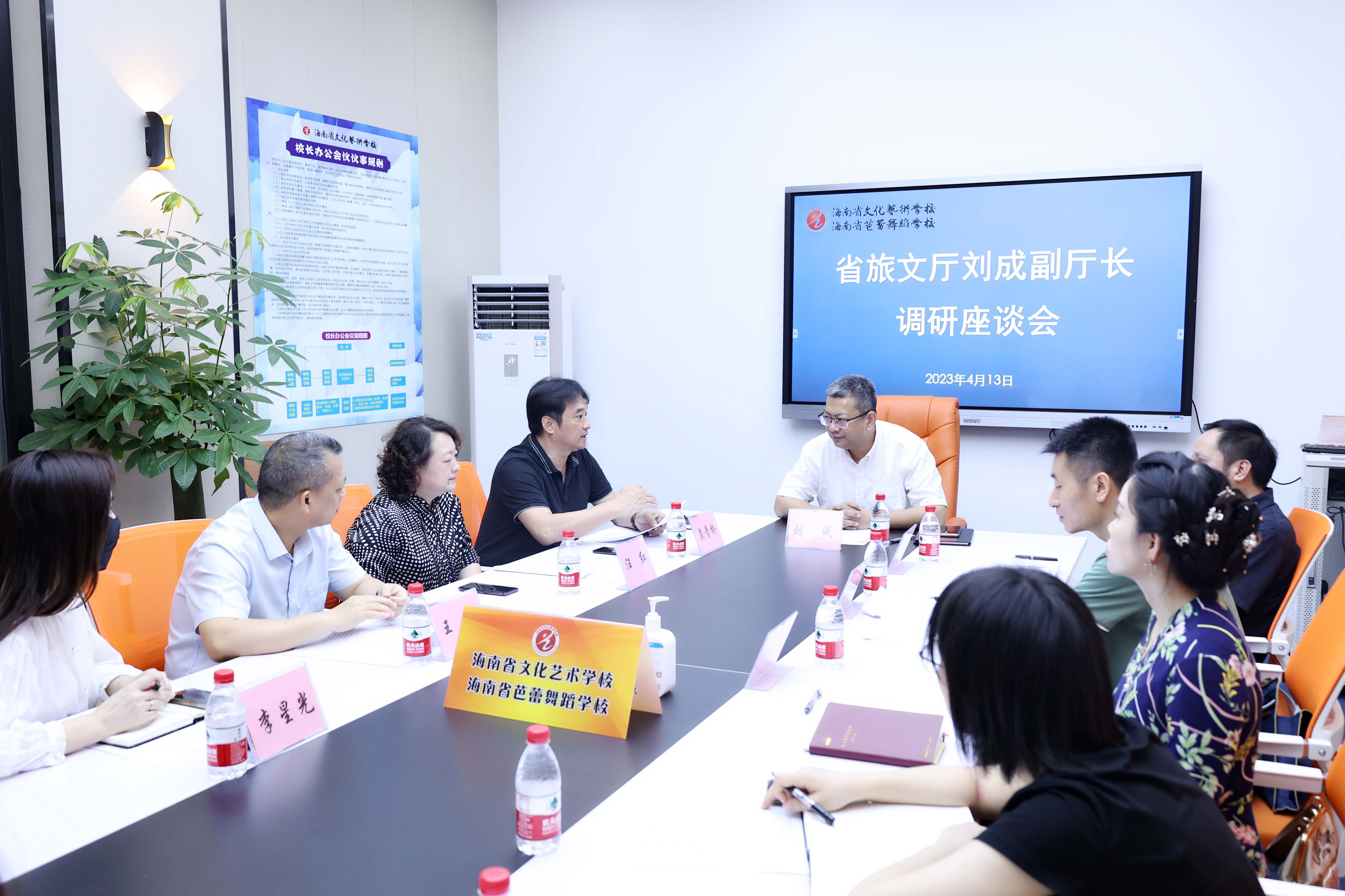 4月13日,省旅文厅党组成员、副厅长刘成,艺术处处长李红、机关党委四级调研员胡喜、艺术处四级调研员何文晶一行莅临beat365调研指导党风廉政、巡视整改和意识形态等方面工作,beat365党总支书记、校长莫青桥,副校长汪红、王枢,校办公室、教务科、学生科、总务科、实训科等相关科室中层干部陪同调研。
