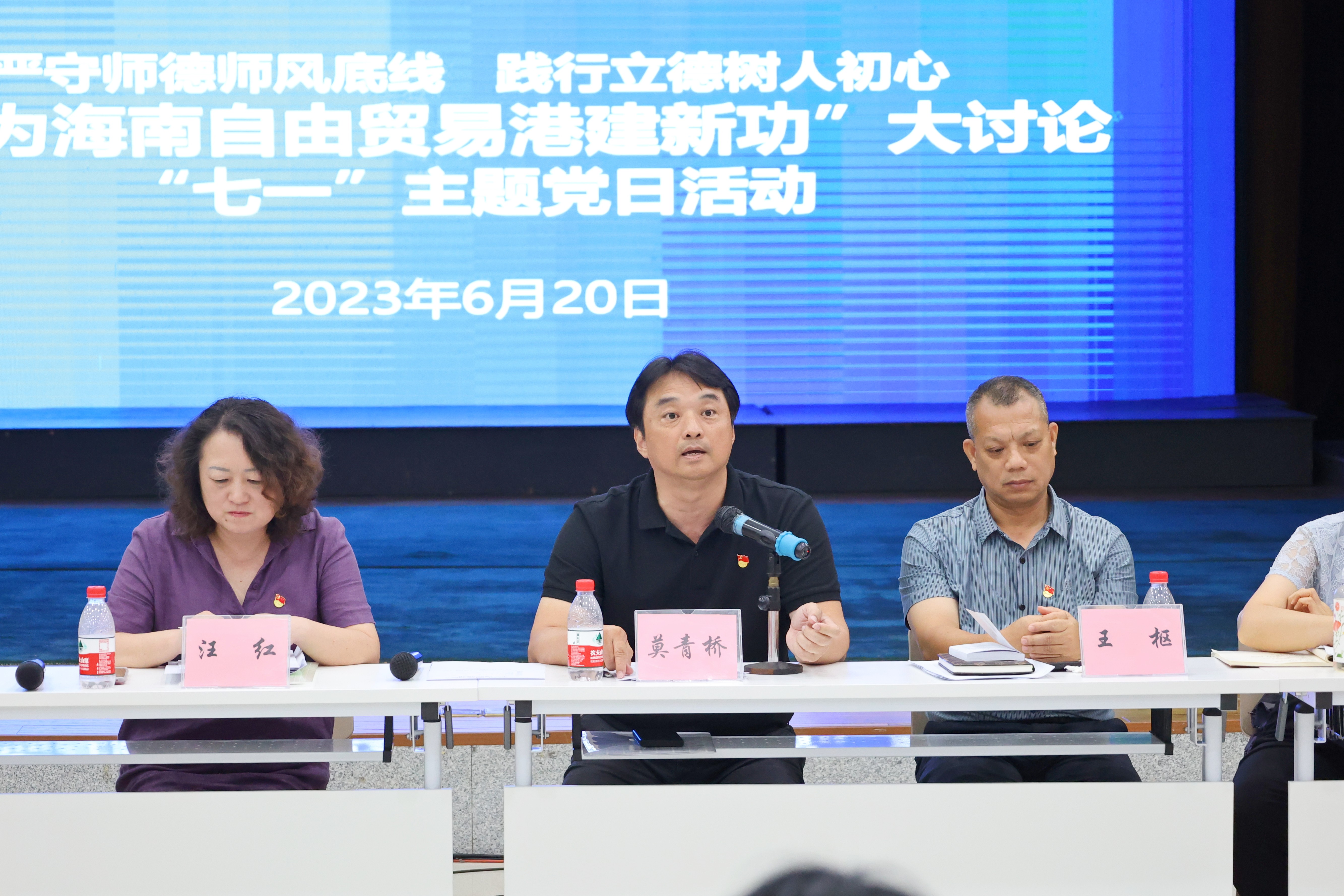 党总支书记、校长莫青桥围绕“我为自贸港建新功”这一主题,向大家汇报四点工作中的认识感悟。莫青桥书记提出,在过去三个月的时间里,beat365掀起了学习贯彻习近平新时代中国特色社会主义思想主题教育的热潮。希望大家要将本次讨论所悟所得转化为坚定理想、锤炼党性和指导实践、推动工作的强大力量。他还对下一步继续深入开展学习贯彻习近平新时代中国特色社会主义思想主题教育工作提出四点要求: