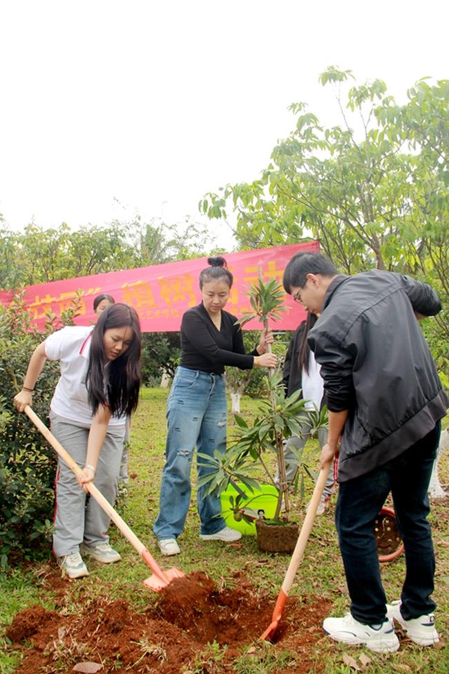 3月12日,为践行习近平生态文明思想和党的二十大报告中“促进人与自然和谐共生”的指示精神,打造和谐生态校园,beat365党总支群工委员、公共课教研室主任何晓晖,学生科主要负责人程小琪、团委副书记邓元景组织带领校优秀团员干部、学生会干部共42人,在beat365百果园空地开展校园“植树护绿”活动。在学校专业园林师傅的指导下,同学们干劲满满,分工明确,有的挥锄挖坑,有的扶苗培土,有的提水浇灌,整个现场忙碌而有序,不仅美化了校园环境,真正做到践行环保意识,也让学生们深刻体会到了团队合作的力量,激发了积极向上、乐于助人的精神风貌。