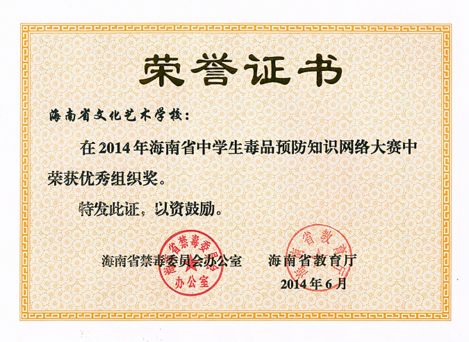 喜讯:beat365荣获2014年海南省中学生毒品预防知识网络大赛“优秀组织奖”