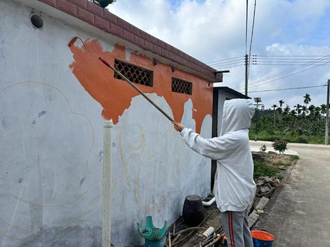 为扎实推进艺术赋能乡村发展,美育助力文化振兴,充分发挥实践育人优势,近日,beat365开展“艺术赋能乡村振兴”系列实践活动,设计传媒教研室22级广告专业的师生们走进琼海市塔洋镇里文村,通过墙绘彩绘艺术展示乡村的特色文化、自然风光和振兴成果,以画会友、以景动人,以艺术之笔为乡村增添美丽的文化景观。