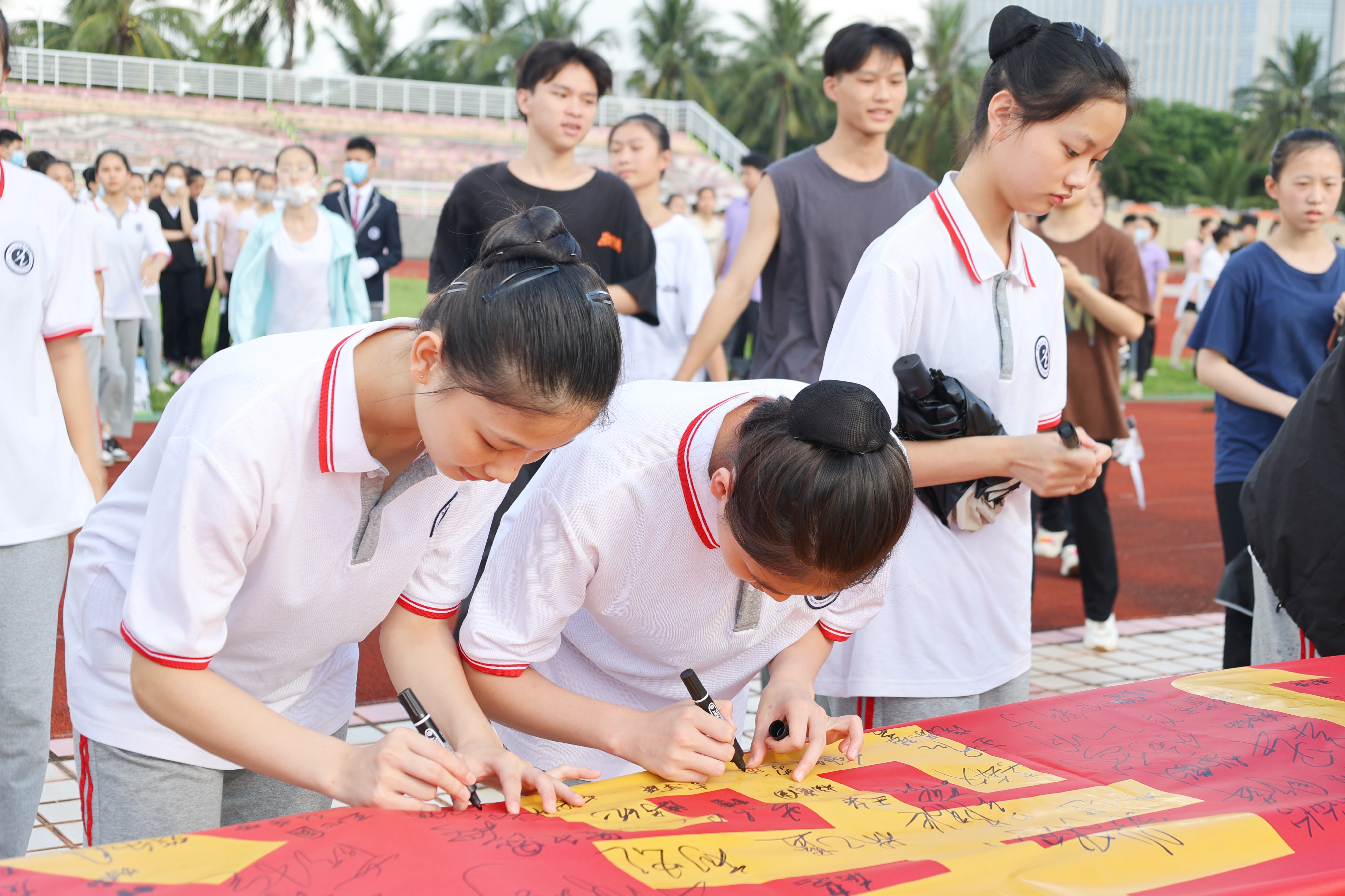 各位代表发言结束后,师生陆续在签名横幅上签下了自己的名字。大家纷纷表示会坚决抵制“套代购”走私违法犯罪行为,提高法律意识,坚守个人底线,为海南自贸港的建设发展打下基础。