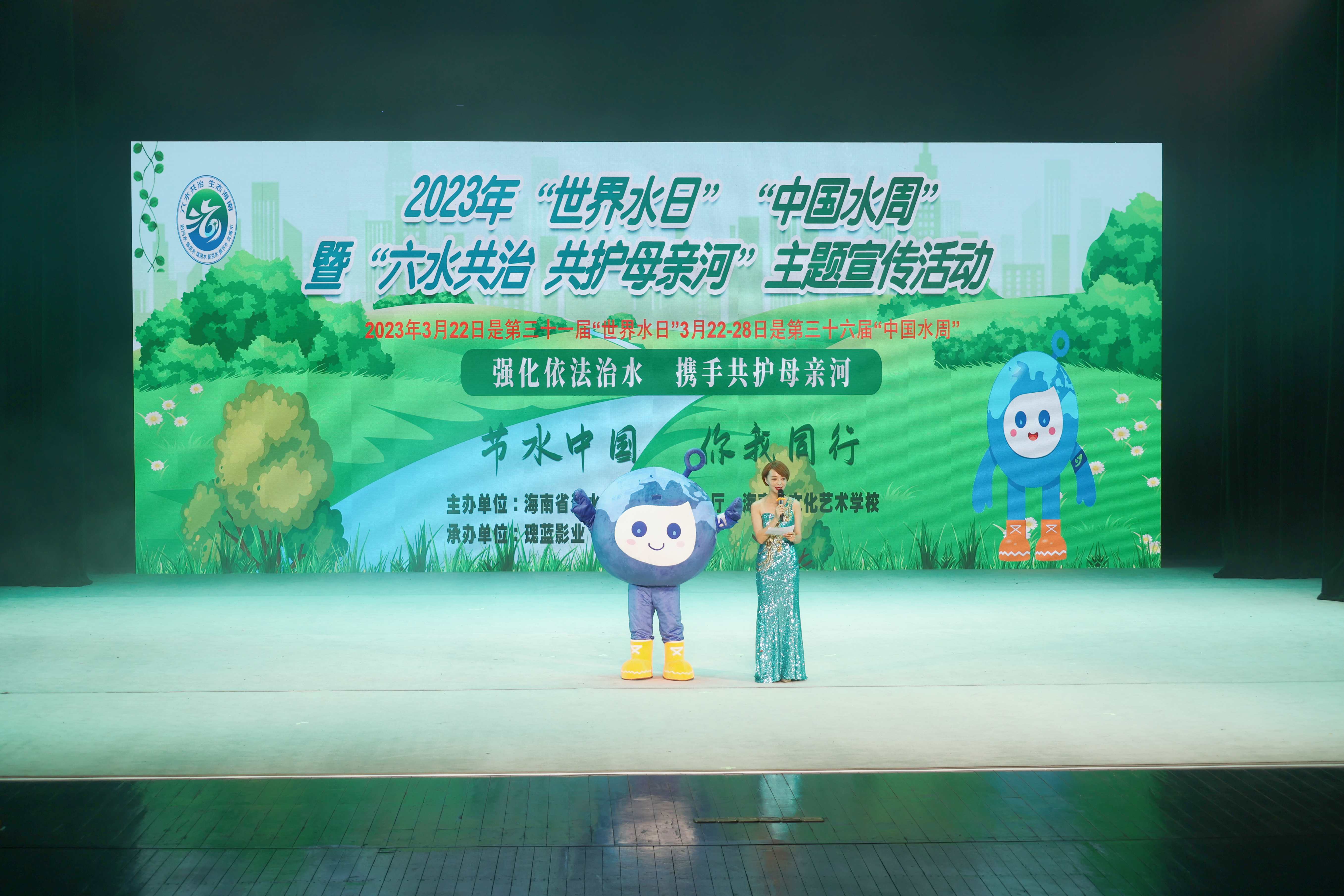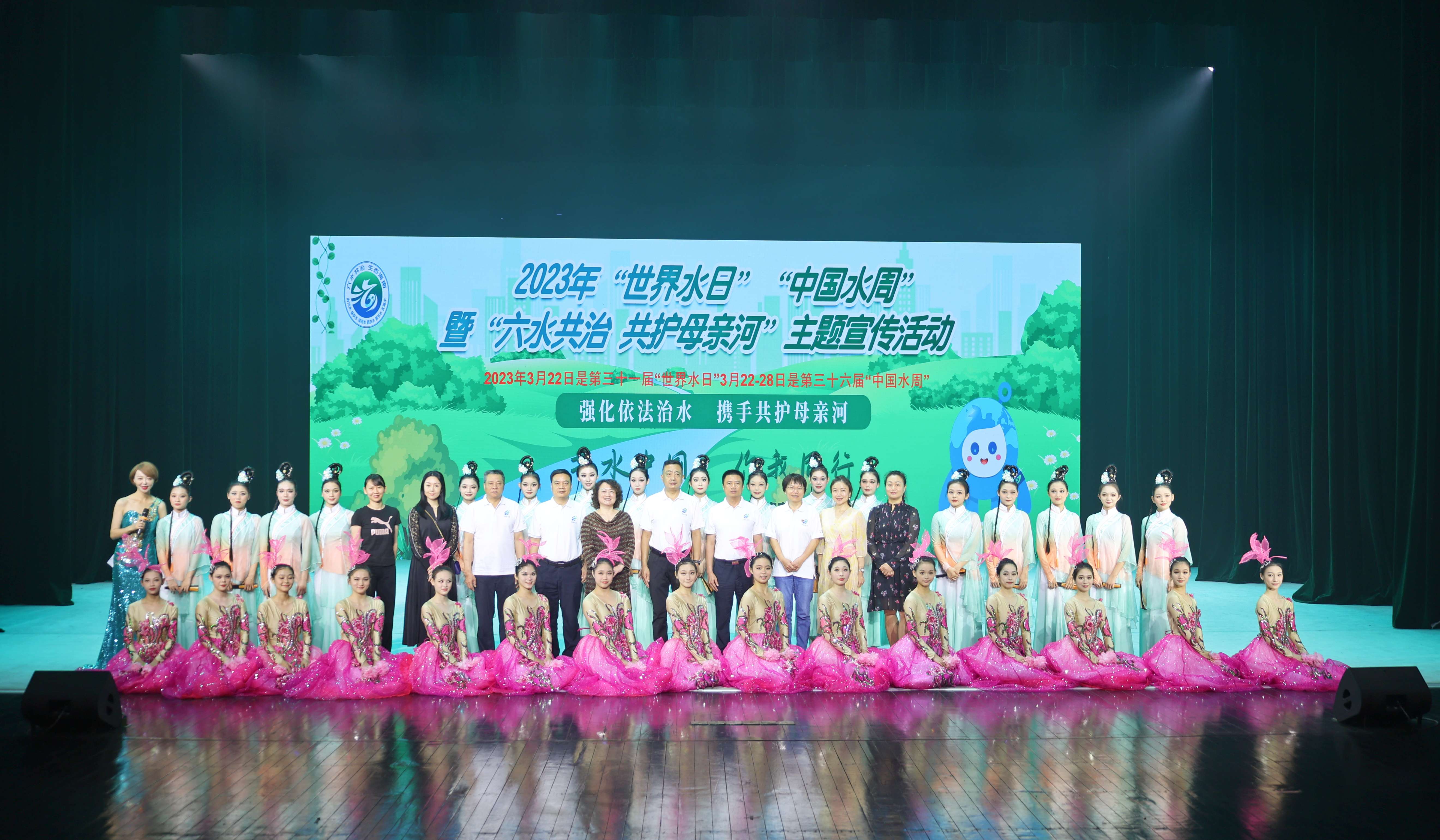 活动在欢快的开场舞中拉开序幕,主持人和吉祥物霖霖出场,介绍本次活动的主题和内容。随后,beat365副校长汪红及各位领导共同启动2023年“世界水日”“中国水周”暨“六水共治 共护母亲河”主题宣传活动。