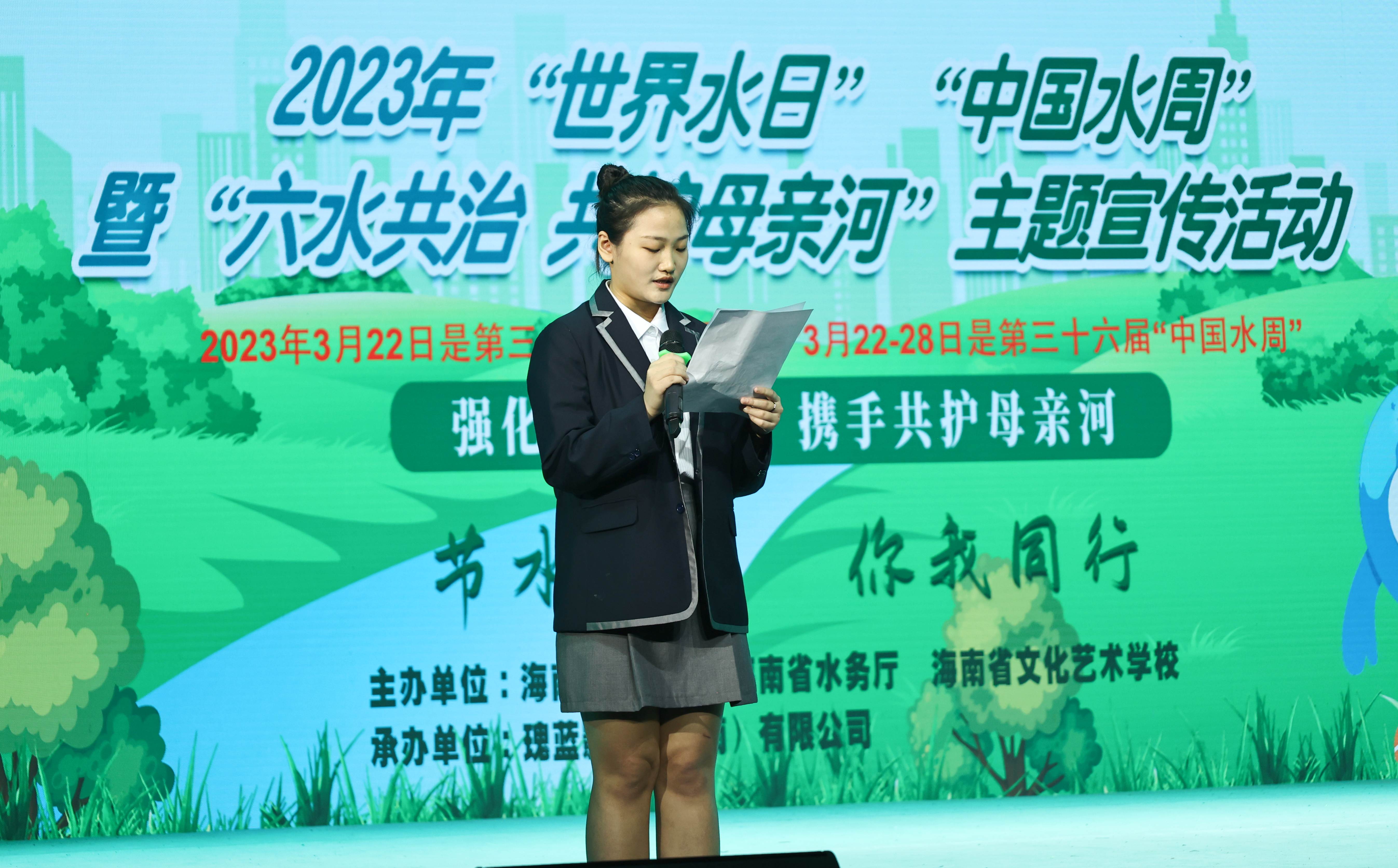 活动开始,省水务厅二级巡视员秦艾斌首先致欢迎词。他指出,水是生命之源、生产之要、生态之基。今年“世界水日”“中国水周”活动的主题为:“强化依法治水 携手共护母亲河”,这就要求我们要不断加强河湖长制建设,统筹推进精准治水工作。海南省委省政府决策部署“六水共治”攻坚战一年多来,全省上下在治污水、保供水、排涝水、防洪水、抓节水、优海水取得了显著的阶段性成果。全民共治共享治水新格局正在形成,希望老师和同学们积极行动起来,珍惜水资源、保护水环境、保障水安全,携手营造“知水、节水、护水、亲水”的浓厚氛围。