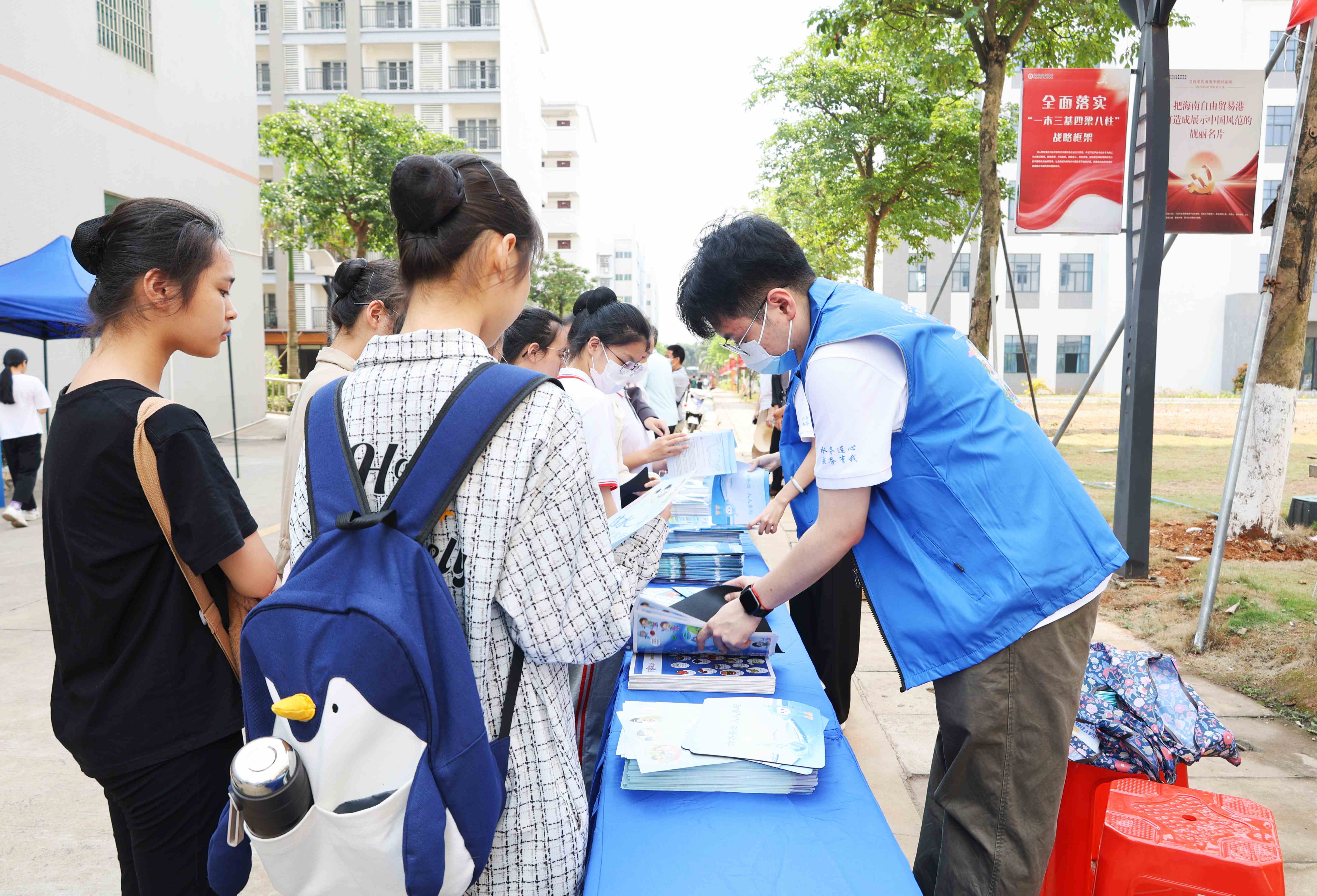 志愿者发放宣传资料