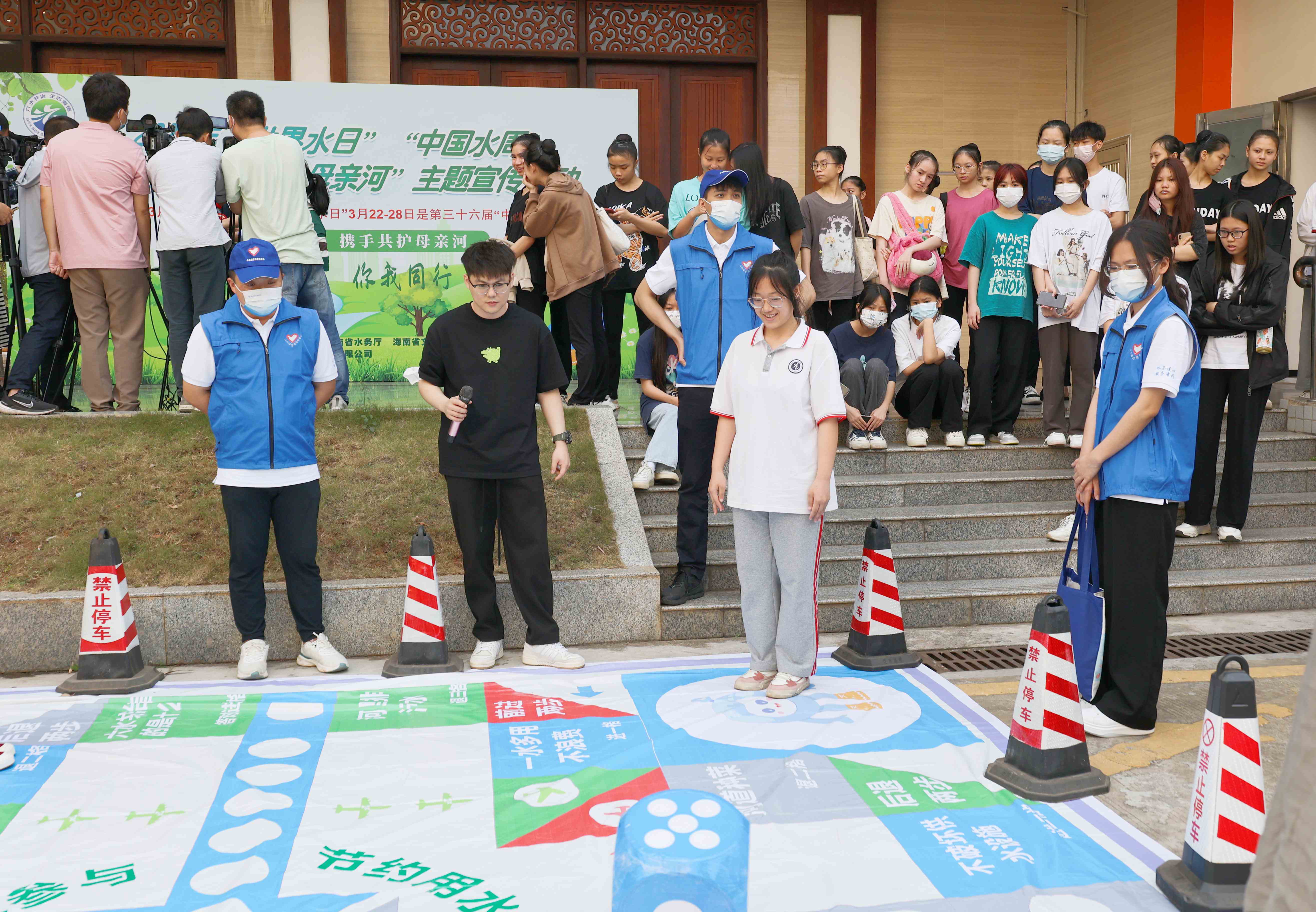 启动仪式结束后,志愿者通过展板展示、发放宣传资料及宣传品等形式,向同学们宣传节水用水、保护水资源方面的知识。同学们还在志愿者的引导下积极参与了真人版飞行棋节水护水闯关游戏、神笔马良#书写六水共治等趣味游戏互动,寓教于乐的同时更让同学们理解水资源的宝贵,加深节水护水的意识。
