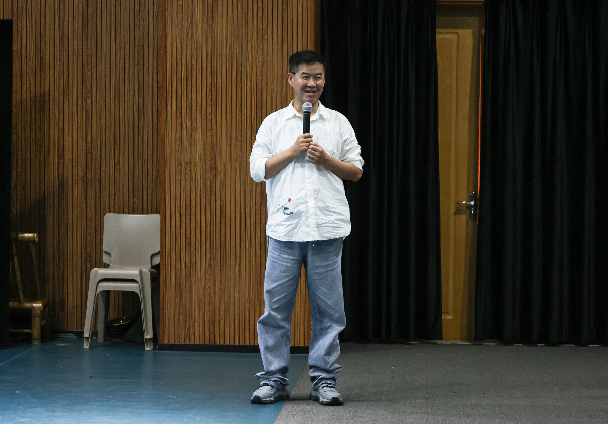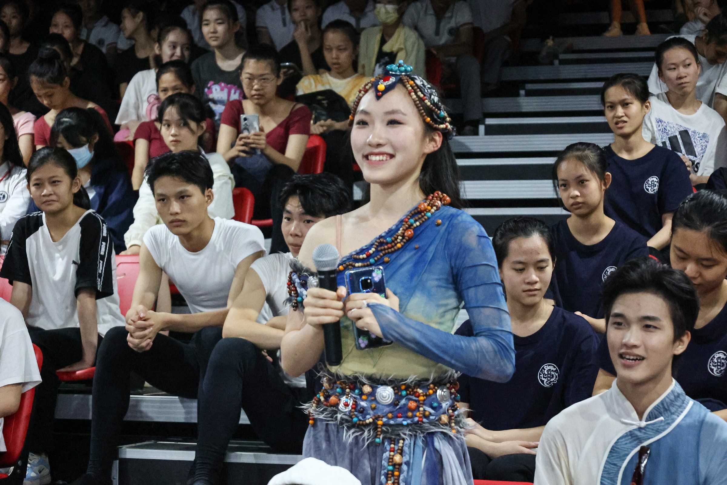 在音乐的起伏流转之下,黄琛迪老师的一招一式轻柔洒脱,干净清爽,展现出一种外柔内刚的独特力量。老师和同学们欣赏完优美的舞蹈之后,与两位艺术家进行了互动交流。赵力民导演和黄琛迪老师积极为在座的老师和同学们答疑解惑,并鼓励同学们珍惜校园时光,努力学习,提升技能。现场气氛亲切温馨,不时响起阵阵欢笑。