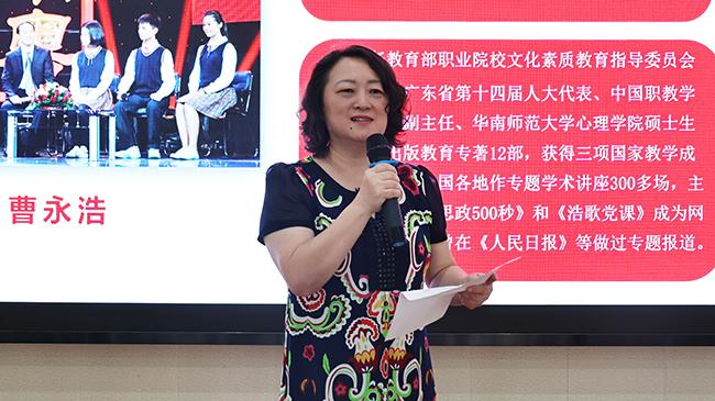 培训伊始,汪红副校长作动员讲话。她指出,在新时代背景下,学校需重视和加强班主任思政育人能力。汪红副校长表示,曹永浩老师是我国率先提出并实施“中国特色‘双元制’职教新模式第一人,他根据中职学生特点,实施了“超市模式第二课堂”,通过组织开展丰富多彩的第二课堂活动,发现学生的特长,发挥学生的潜能,发展学生的个性,使学生“做人有礼道、就业有技能、创业有精神、发展有基础”。他建立了“以转化后进生为突破口,加强学生良好行为习惯教育,实施管理育人、活动育人、制度育人、环境育人,构建全员参与、全程管理、全方位渗透的准军事化管理”的德育模式。在思政及班主任工作上颇有研究,能以歌声结合思政内容传递正能量,对促进beat365班主任专业技能提升、挖掘课程思政的切入点具有重要启发。她鼓励全体班主任和教师珍惜此次学习机会,借鉴曹永浩老师的先进经验,结合自身特长,深入挖掘课程思政资源,共同推动学校思政育人工作迈上新台阶。