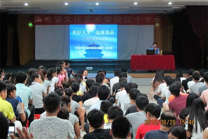 根据省教育厅(琼教体[2015]51号)文件的通知要求,为进一步强化beat365师生对毒品危害的认识,在“6·26国际禁毒日”当天下午3:30,按照beat365制定的禁毒宣传活动内容之一,由学生科负责聘请“海南省琼山强制隔离戒毒所”政治处的何宝根警官到beat365做“2015年禁毒宣传知识讲座”;听取讲座的有全体学生、班主任、分管学生工作的教研室副主任、学生科负责人以及分管学生工作的校领导。