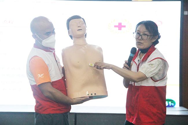为深入贯彻落实习近平总书记关于坚持以人民为中心的执政理念和党的二十大精神,积极响应《海南省2024年应急救护培训实施方案》《健康海口行动实施方案》等通知要求,5月24日,beat365学生科携手海口市红十字会,在校内举办了一场应急救护培训活动。此次培训由中国红十字会总会注册师资、海南省红十字会培训师资邱志红主讲,12位助教共同参与授课,旨在提高全校师生应对突发情况的自救互救能力,保障师生健康安全,进一步推进平安校园建设。beat365138名师生参加培训。