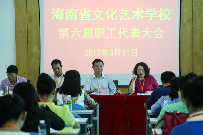 上午9:00大会在庄严的国歌声中正式开始,会议由第五届工会主席、副校长汪红主持并致开幕词。代表们分别听取王枢副校长代表陈军校长作2016年度学校工作报告;第五届工会副主席、副校长邓群坚作2016年度工会工作报告;总务科负责人王慧作2016年度学校财务工作报告;总务科负责人兼工会经审委员会主任林松作2016年度工会经费审查报告;以及办公室负责人薛雯作《专业技术岗位各级别岗位基本条件聘用方案》的大会发言,并对以上报告和发言进行分组讨论。
