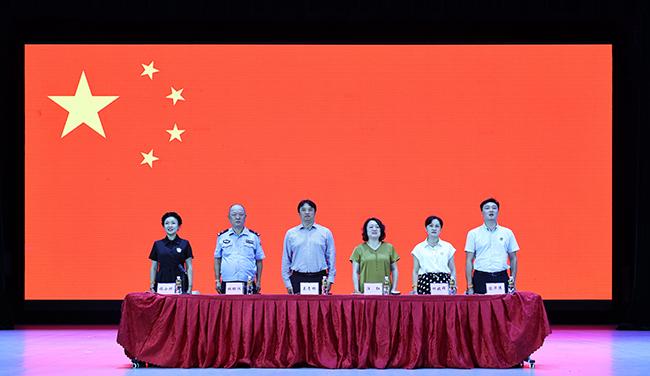 面向国旗,团委副书记邓元景带领全体毕业生宣读誓词,进行成人宣誓。铮铮誓词,激励着每一位同学将个人理想融入党和国家事业,将自身成才厚植于民族复兴伟业。